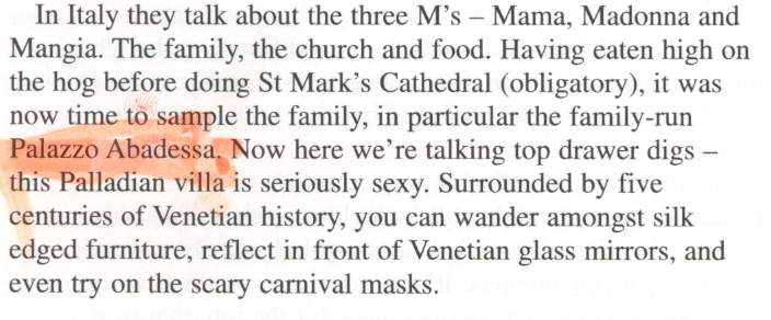 "Offering guests a unique and unforgettable stay is our greatest satisfaction, as experienced by artists Turner and Monet, Byron and Rilke, Ruskin and Th. Mann, famous guests of the recent past who celebrated Venice in paintings and verse, leading to our literary guestbook of the city. Today, clients and magazines from around the world leave small, sincere notes of the sentiments and pleasure felt while staying at Palazzo Abadessa."